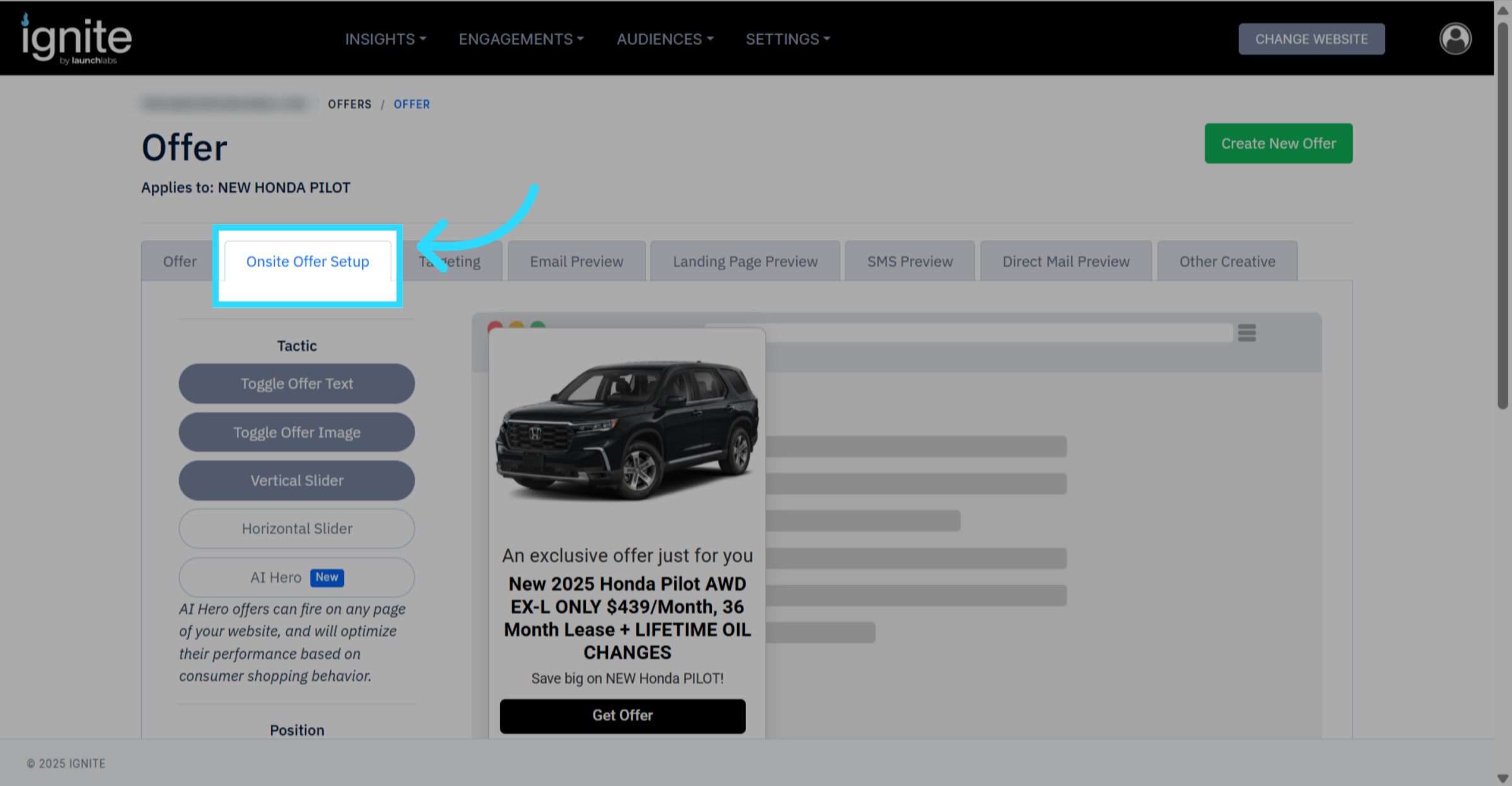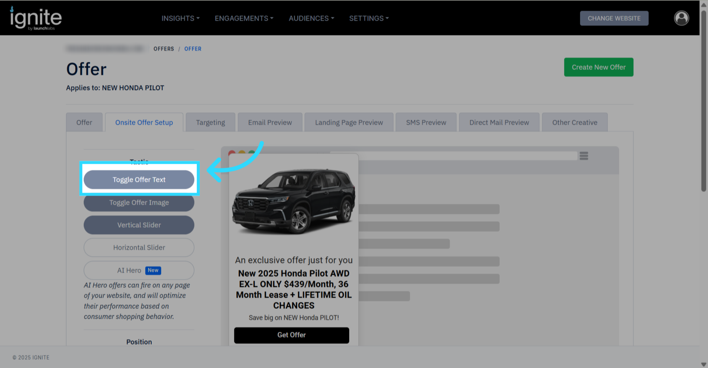 After enabling this setting, preview your onsite offer on both desktop and mobile to ensure your creative appears correctly.