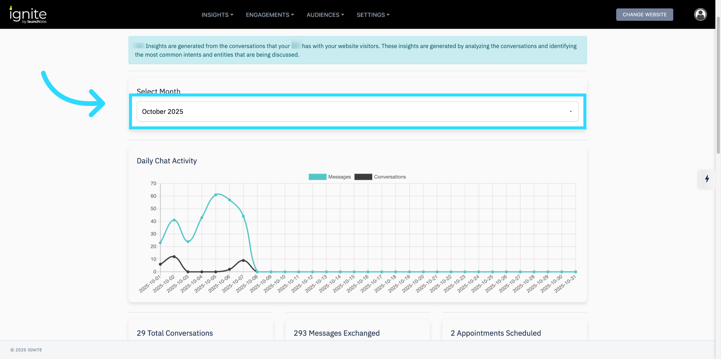 Click ChatAI Insights from the menu to open the reporting dashboard.