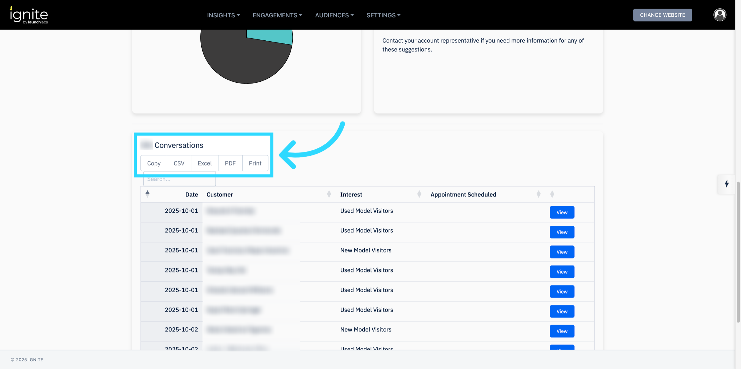 If needed, export ChatAI Insights for further analysis or sharing with your team.