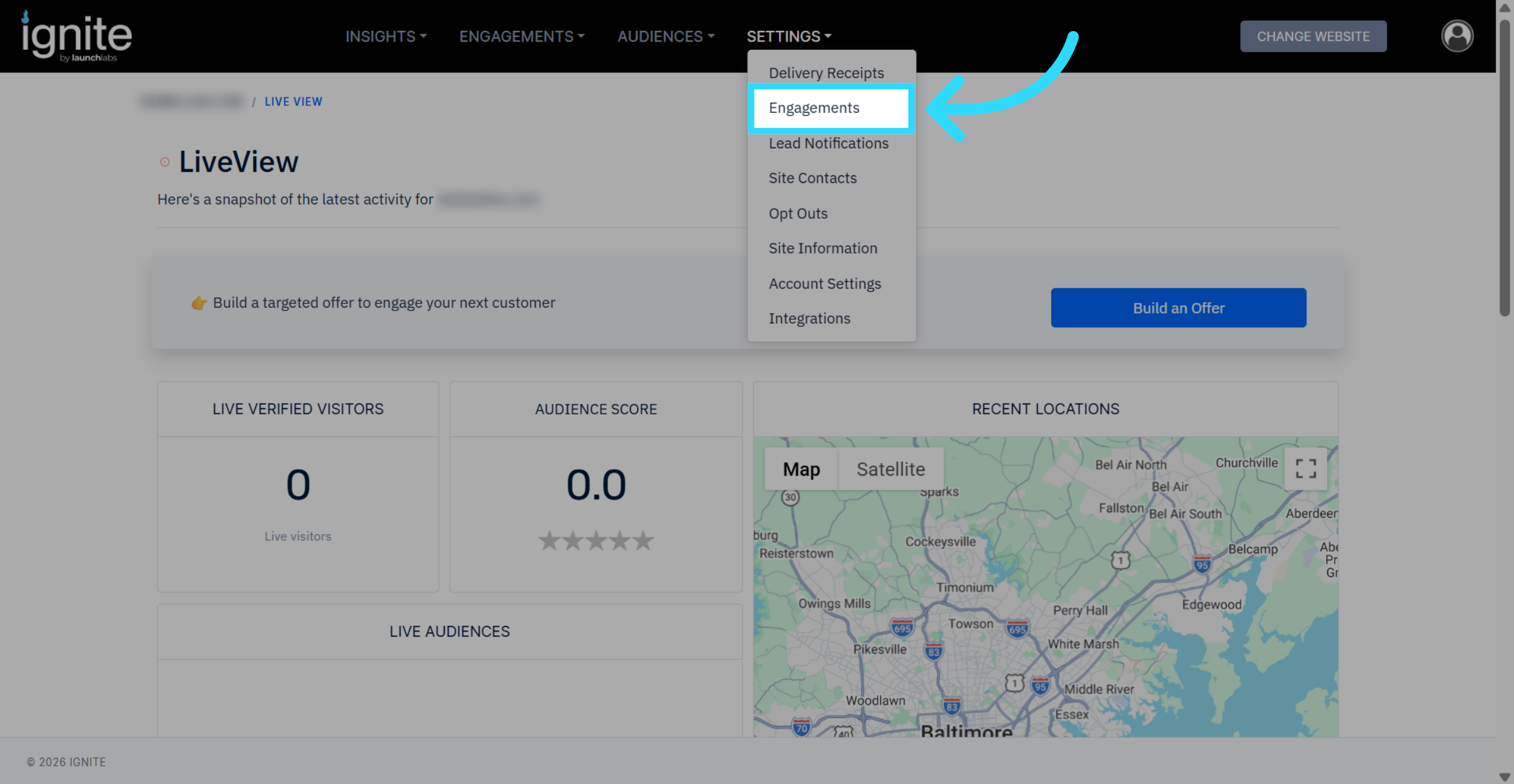 - Select Engagements from the dropdown menu.