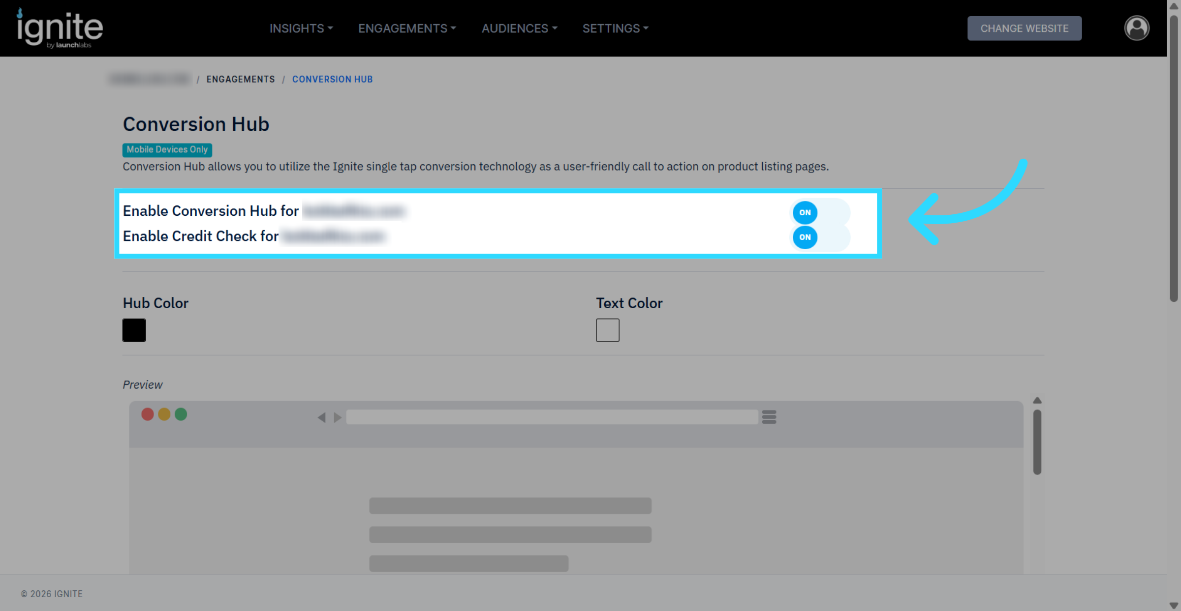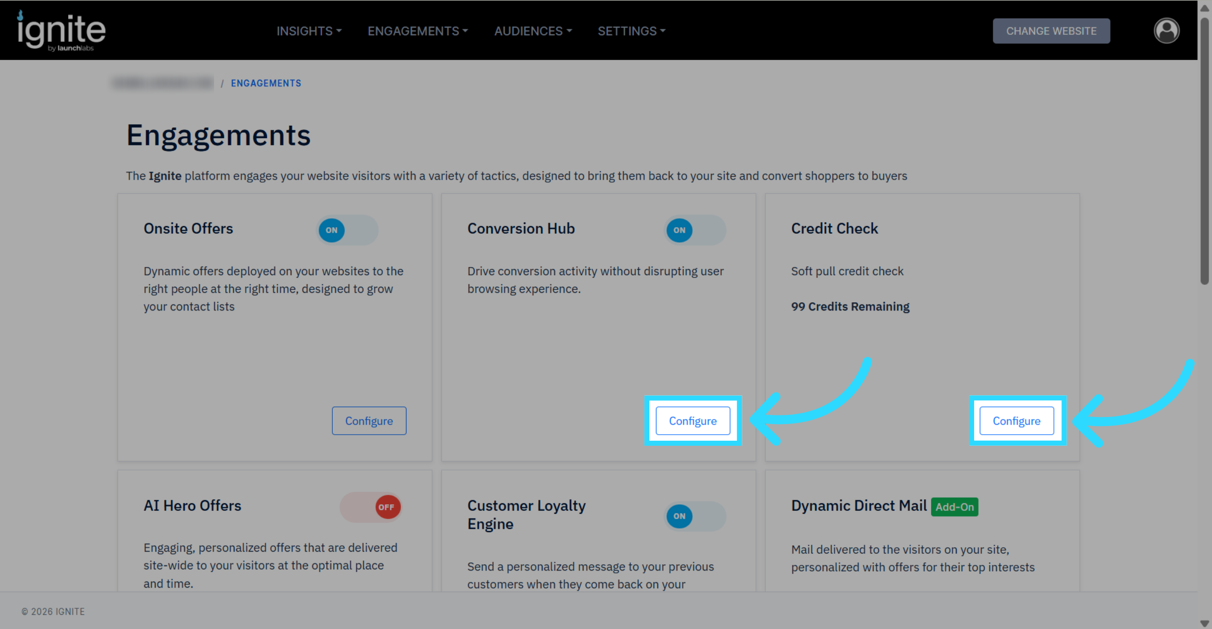 - Click Configure under Credit Check or under Conversion Hub as either button will take you to the same page.