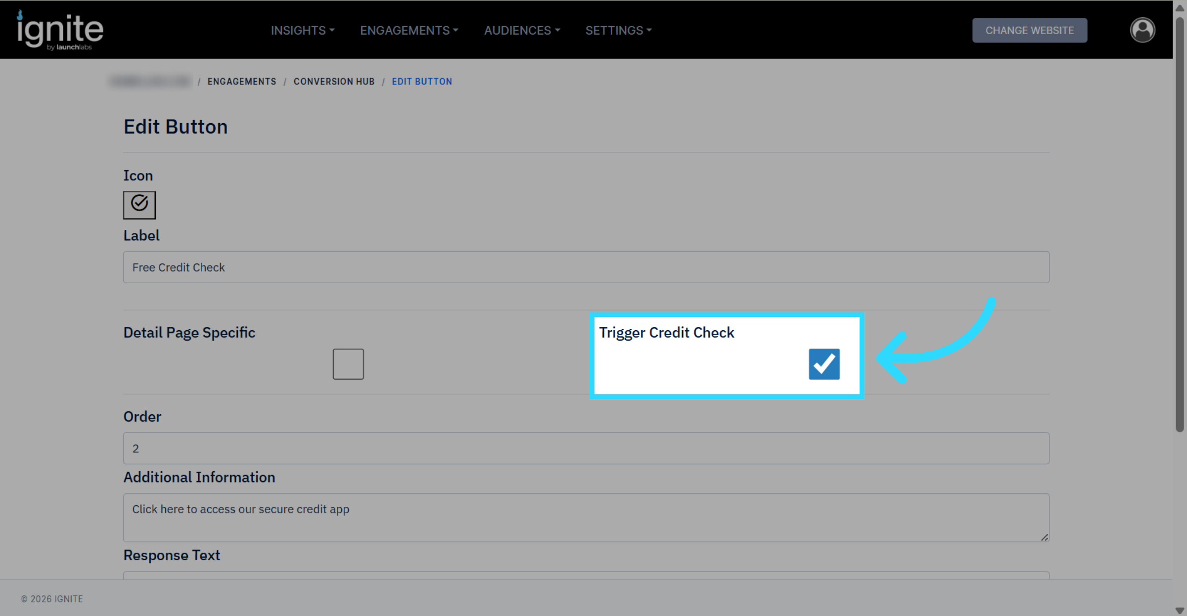 If the button is missing, add or update a Conversion Hub button to include Credit Check.