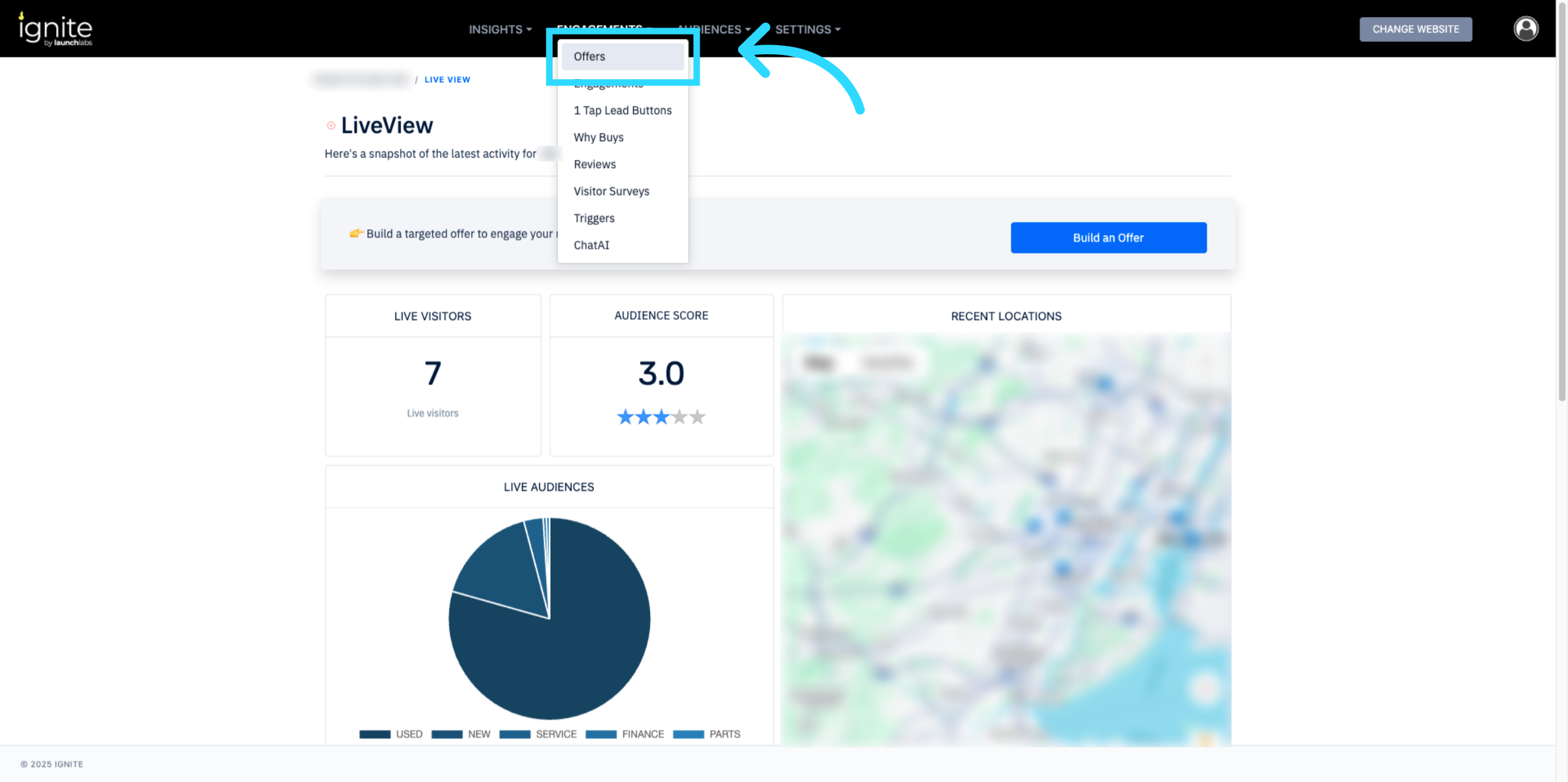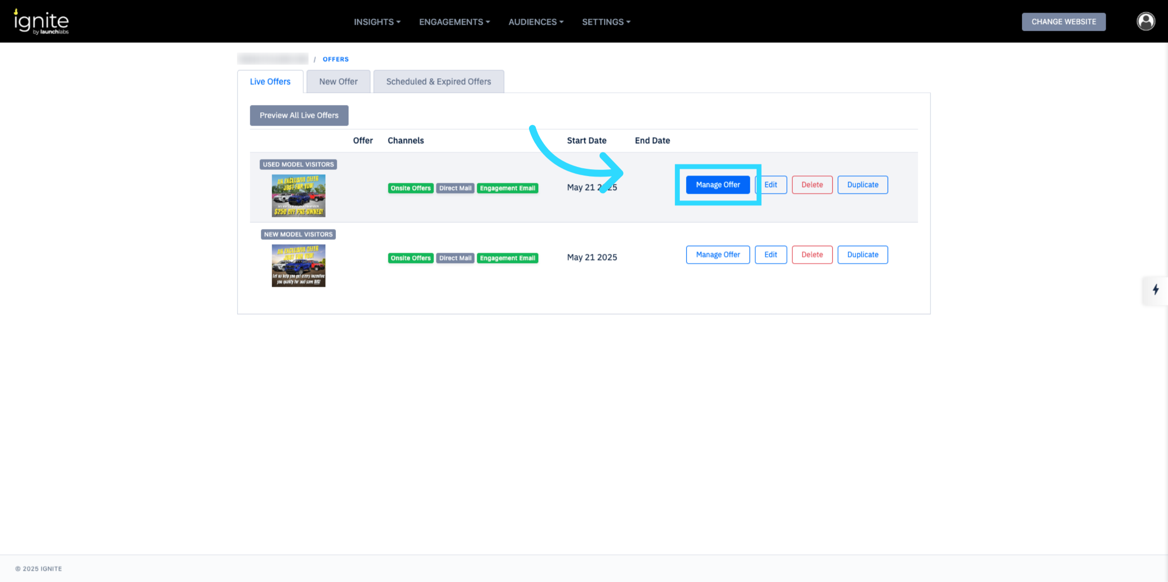 From the Engagements menu, click Offers to view and manage available promotions.