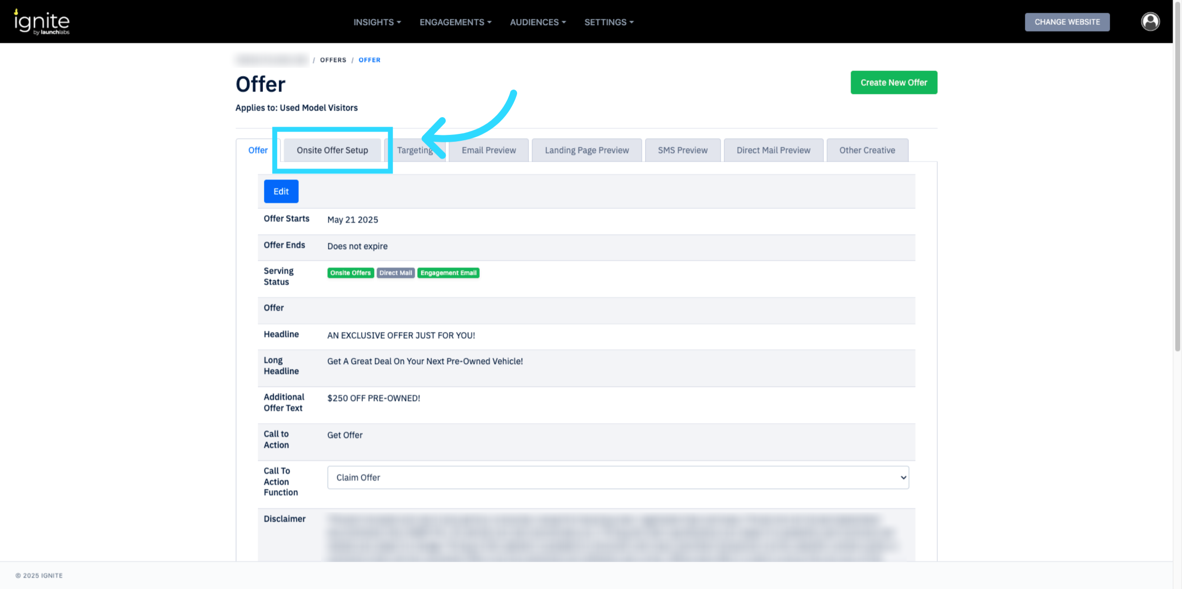 4. Open Onsite Offer Setup