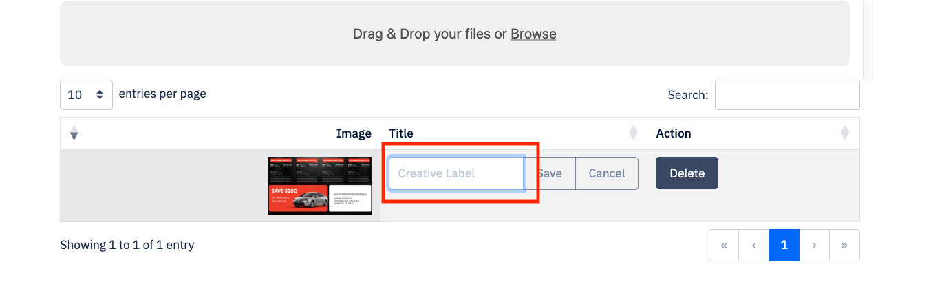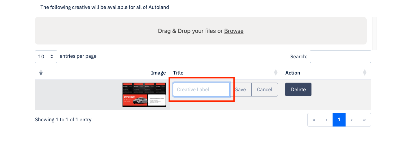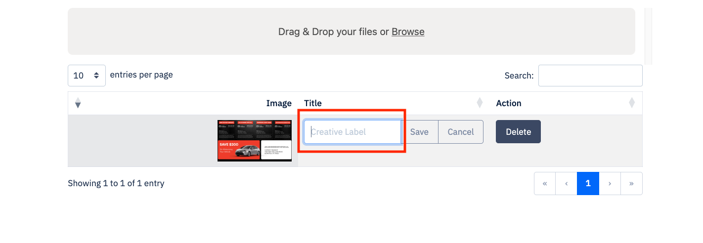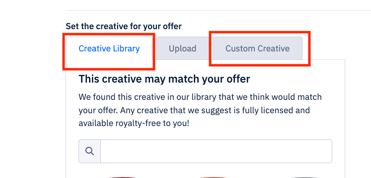 Uploaded items will show up in the offer builder and the custom creative builder.