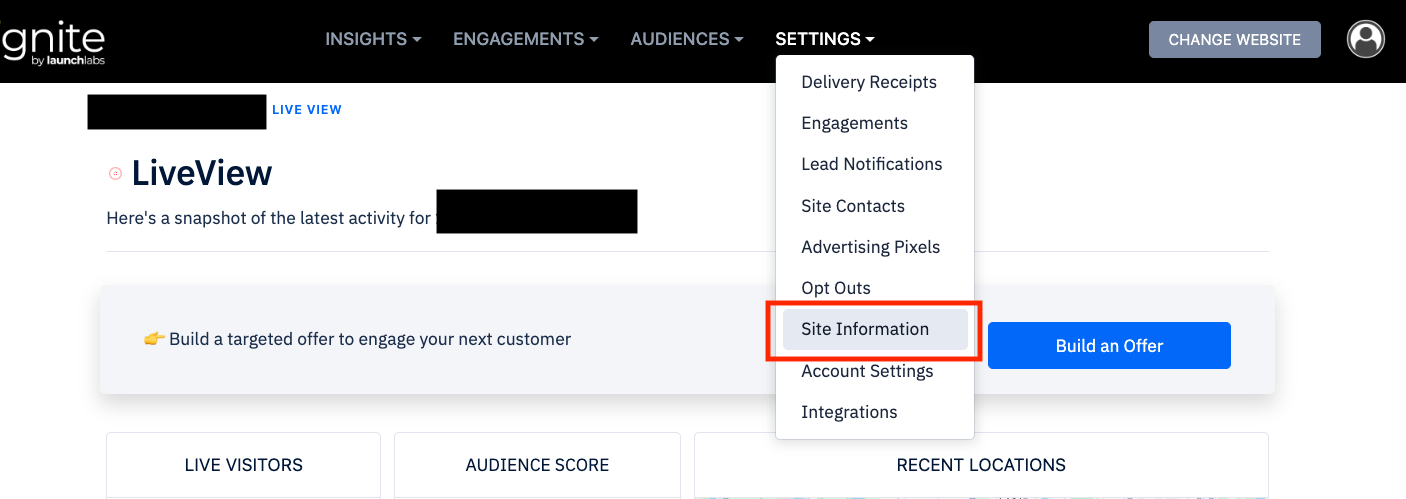 Select Settings and then 'Site Information'