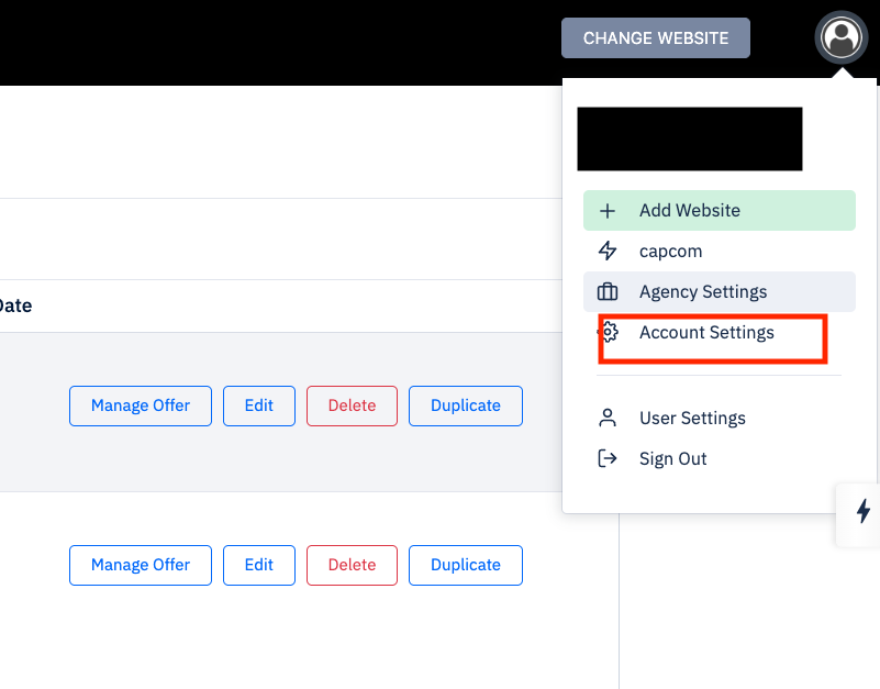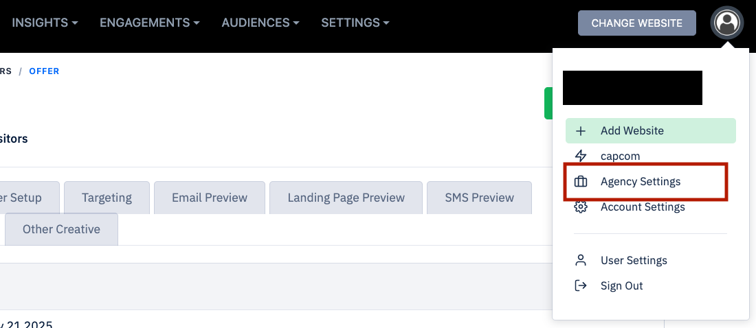 Navigate to the user icon in the top right and select 'Agency Settings'