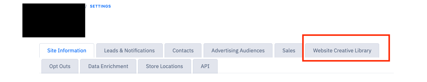 These creative items are available to a single website only. To add website level creative: