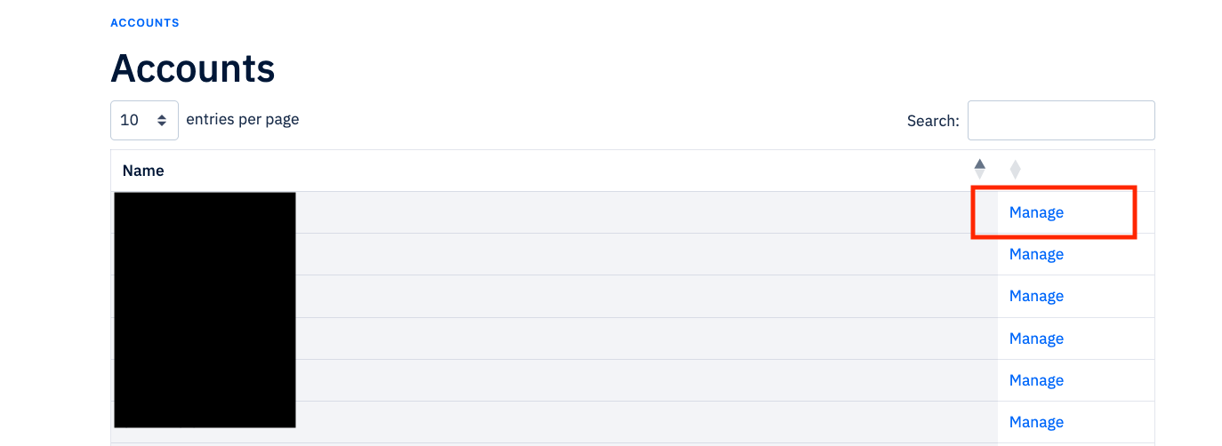 Select 'Manage' next to the account you want to add a creative to