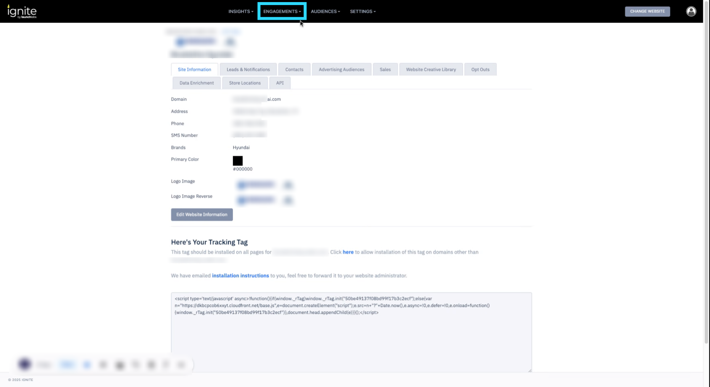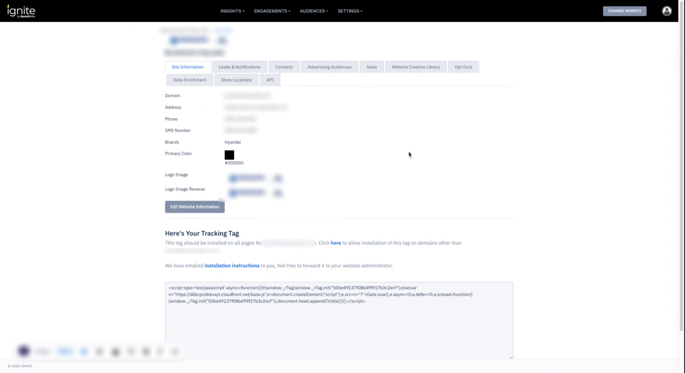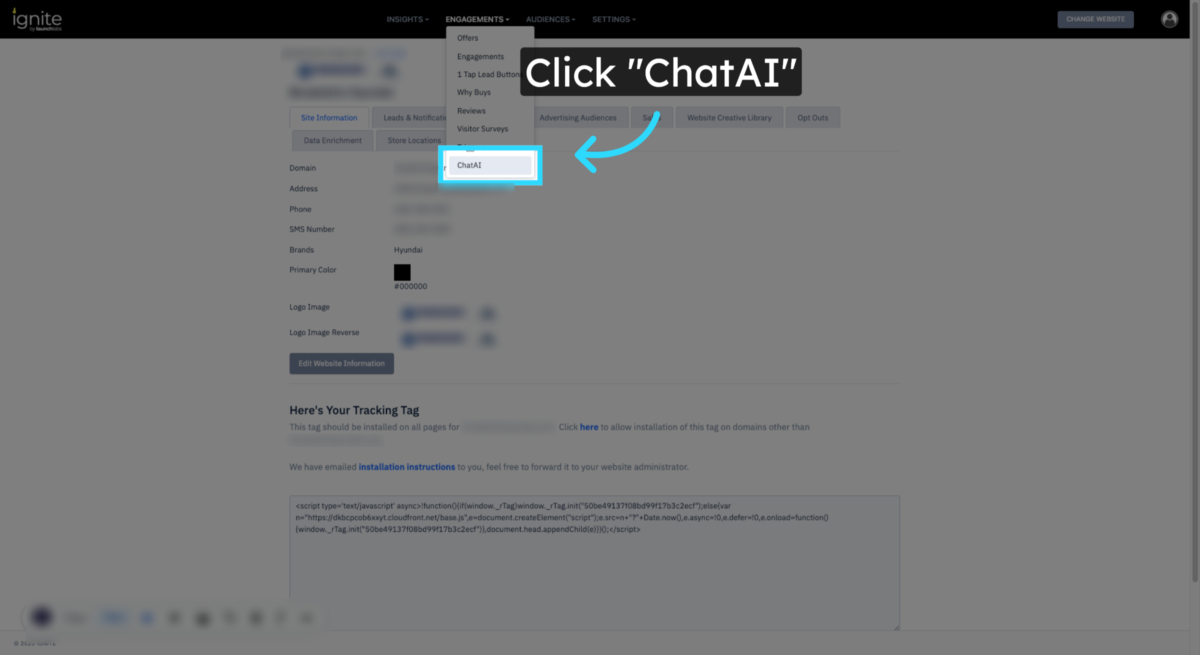 Navigate to the platform, then open the Site Information page for the dealership's website you're configuring ChatAI for.