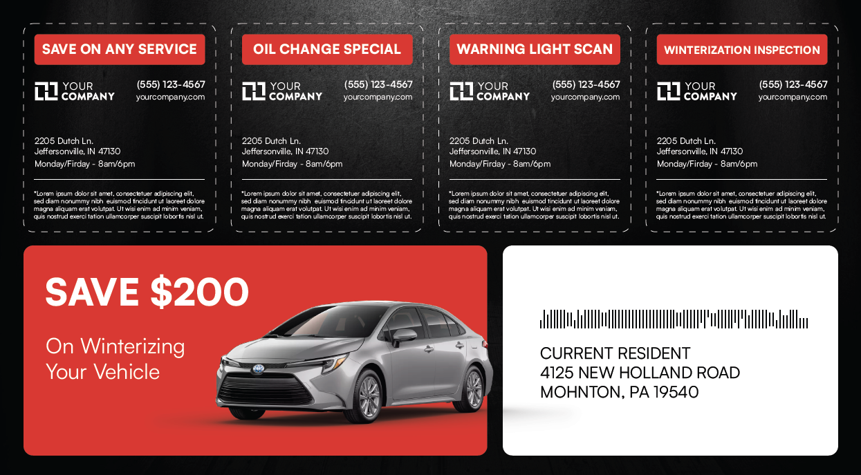 You can upload a single creative asset that will be automatically applied to each mail piece. The design remains consistent, while Ignite dynamically personalizes shopper details and offer information for each recipient.