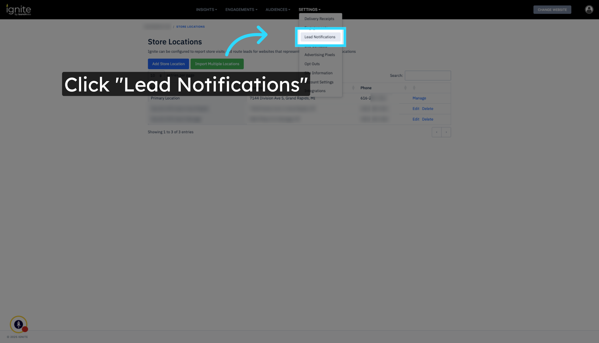 This article explains how to manage multiple store locations within the Ignite platform. You’ll learn how to add and import new store locations, edit existing ones, and configure lead notification settings to ensure leads are routed correctly.