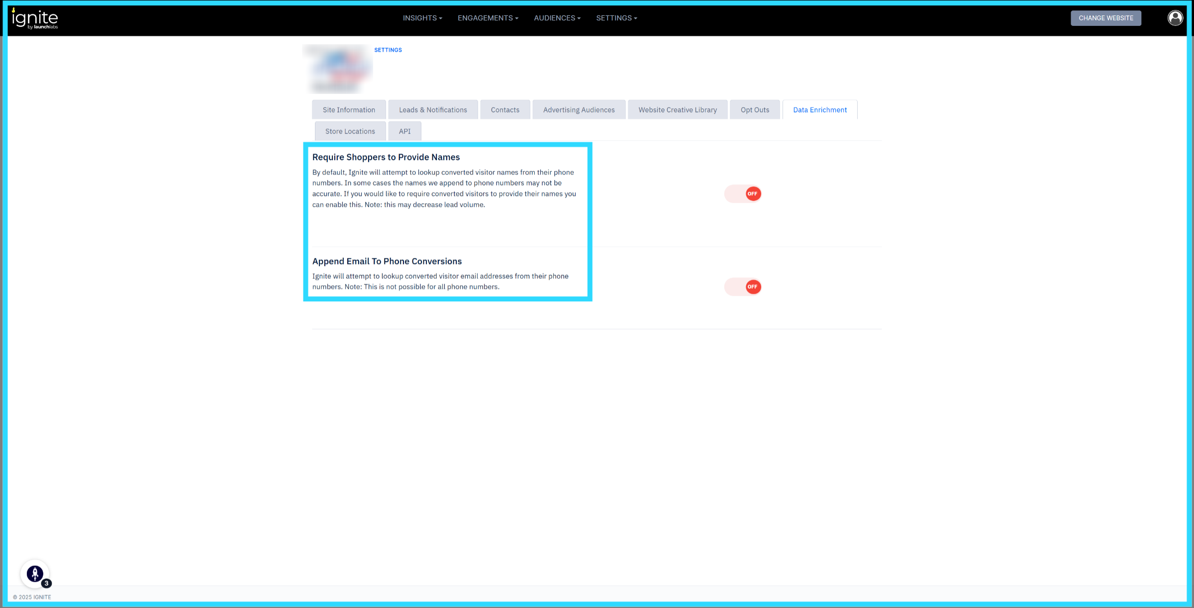2. Data Enrichment Toggled On