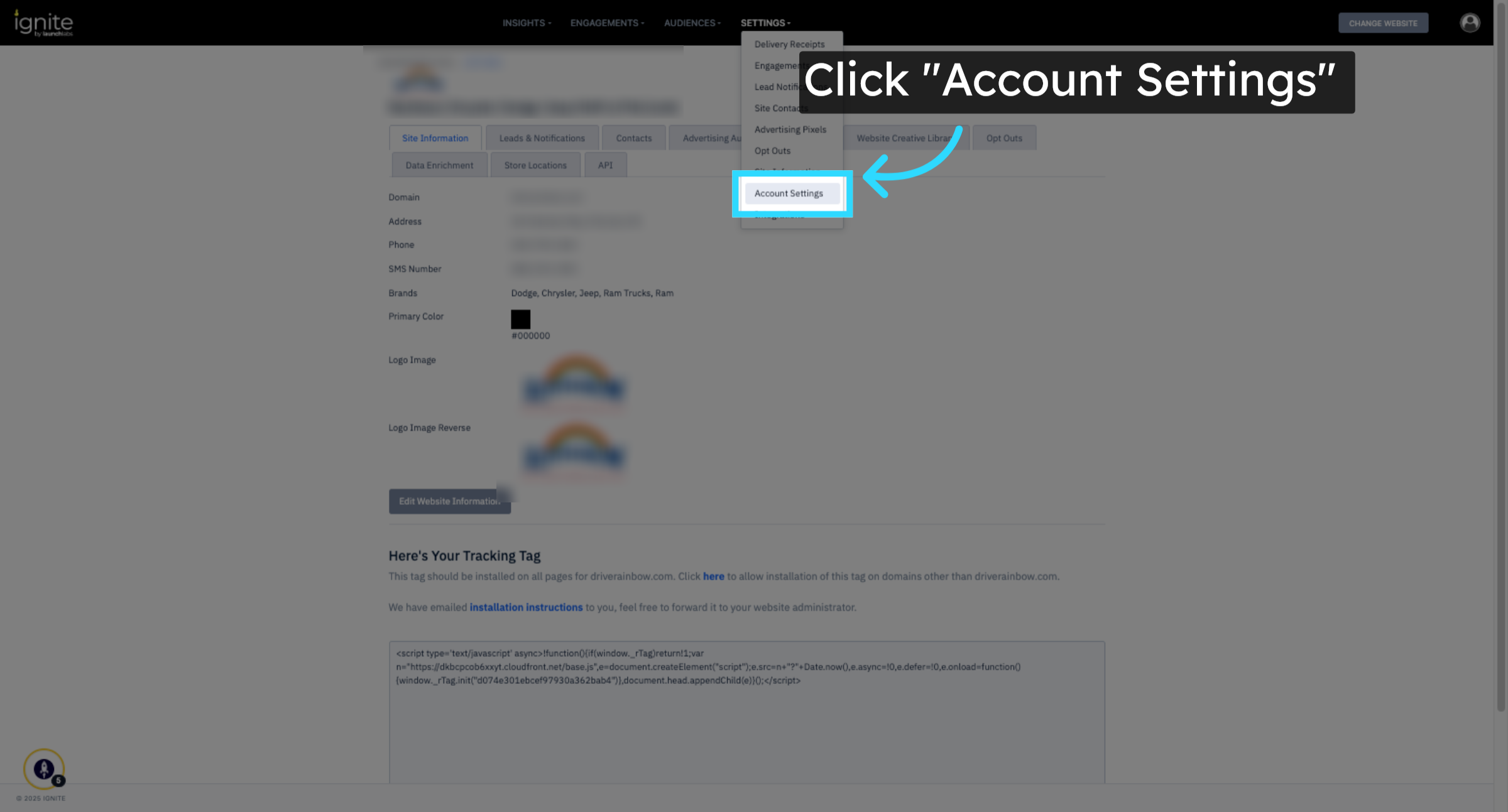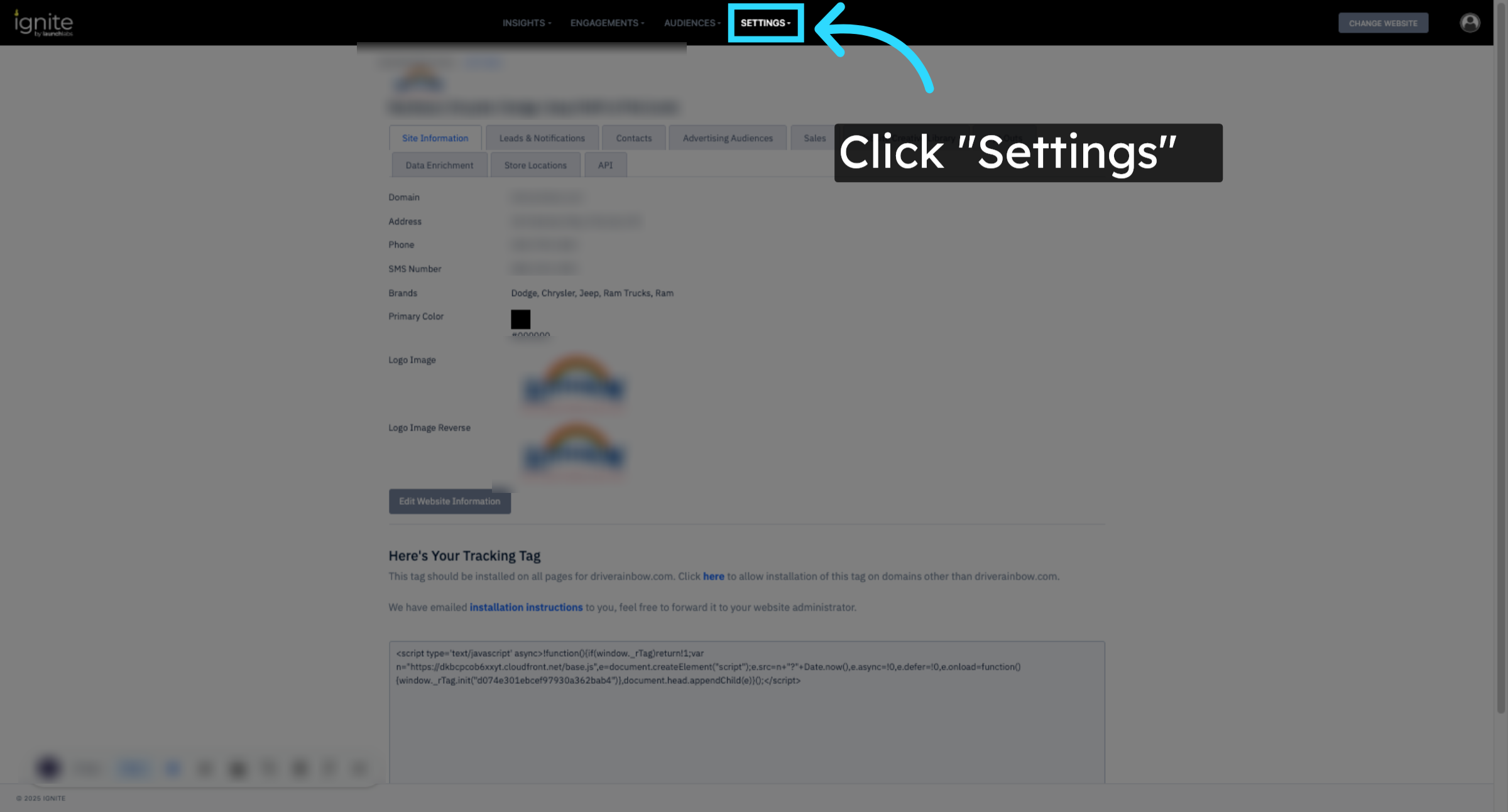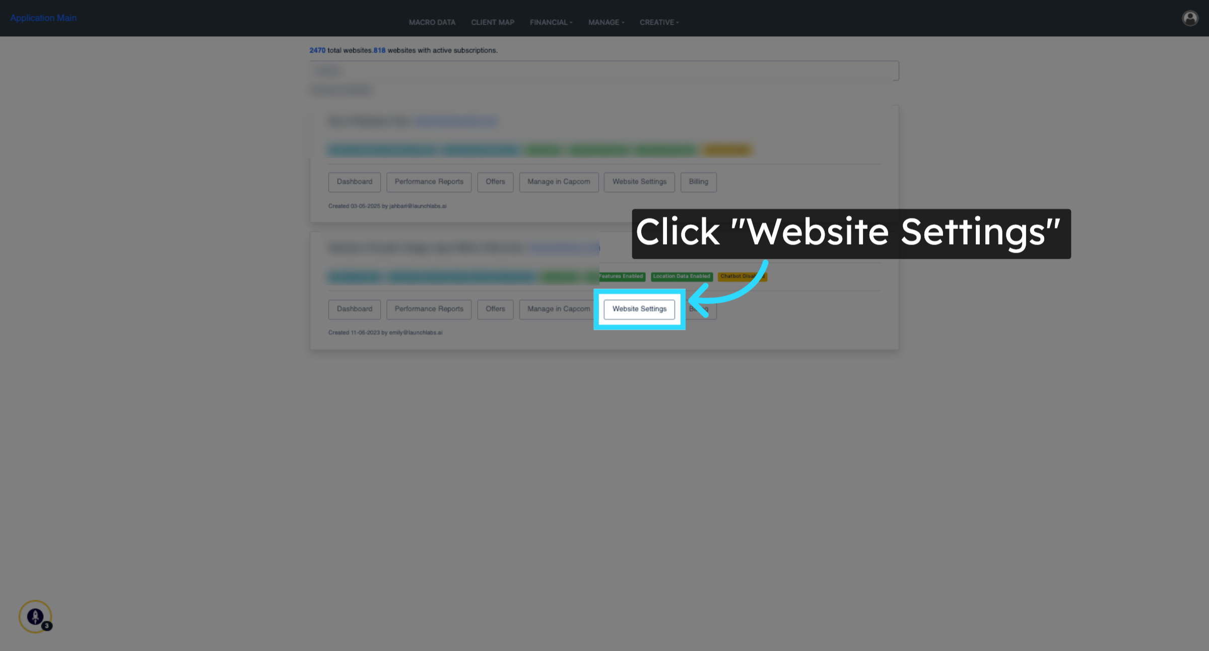 Once you've found the correct website, click Website Settings, then click Settings to access the general settings panel.