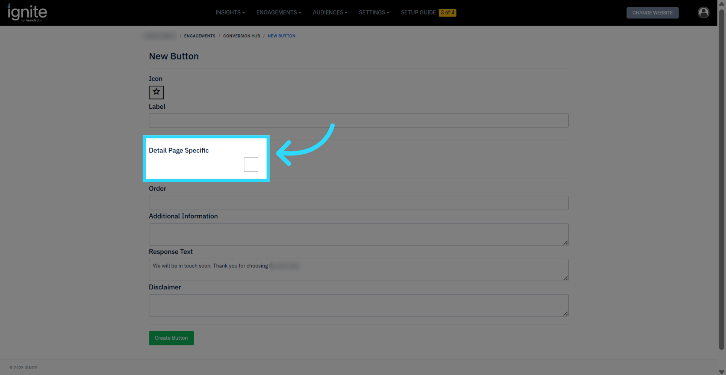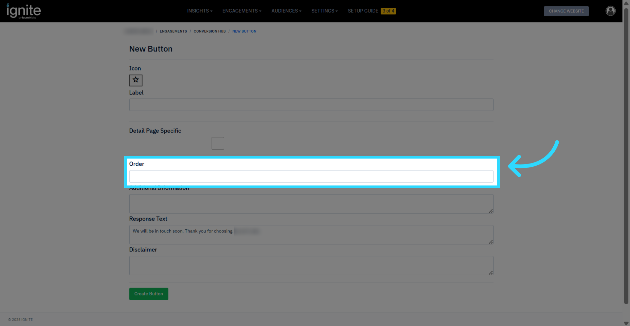 - Order: Define the button’s display order within the Conversion Hub bar.