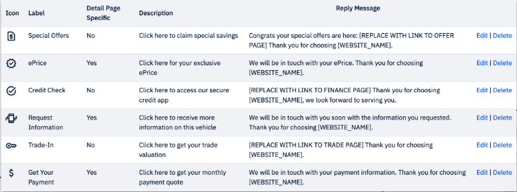 - You can use the preconfigured Reply Messages by clicking Edit, or create your own custom message template.