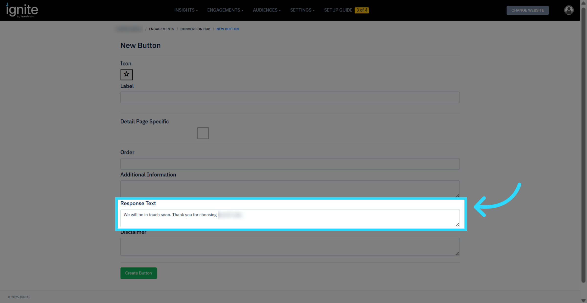 - Response Text: Enter the message the customer will receive after engaging with the button.