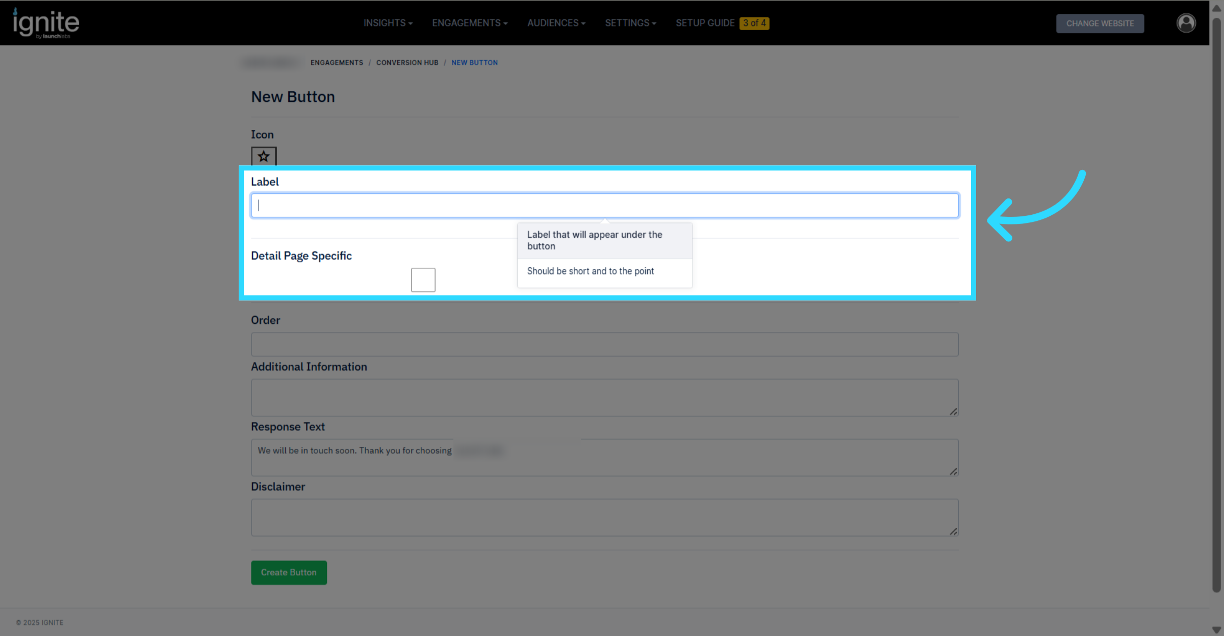 - Enter a Label — this is the text customers will see on the mobile Conversion Hub bar. - Examples: “Special Offers”, “Credit Check”, or “Schedule Test Drive”