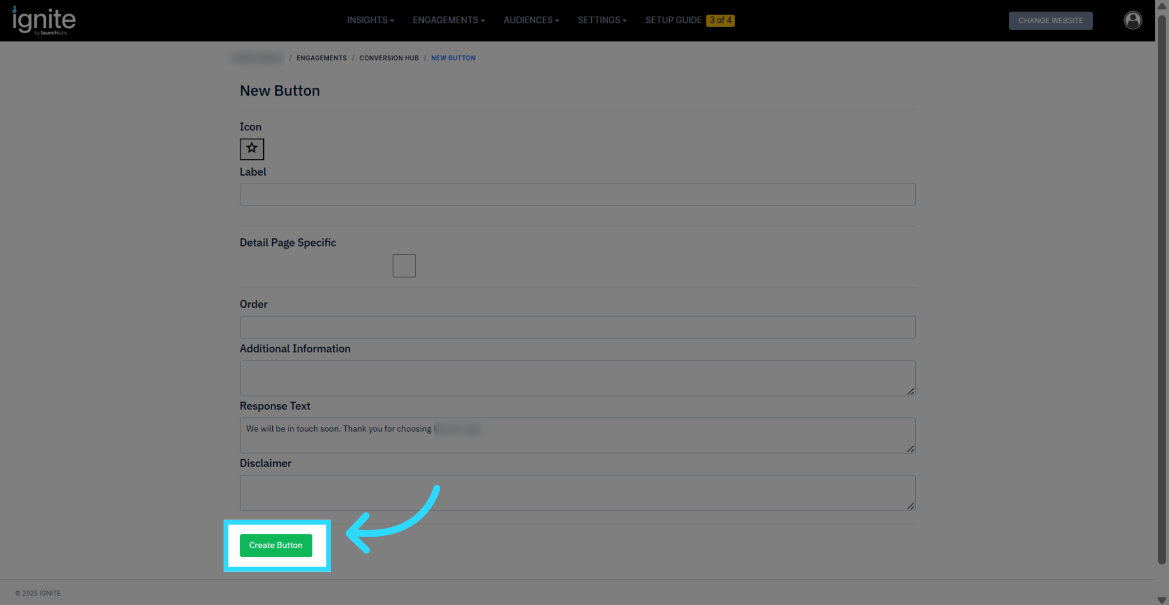 If you’d like to add your own buttons to the Conversion Hub, click Create a New Button.