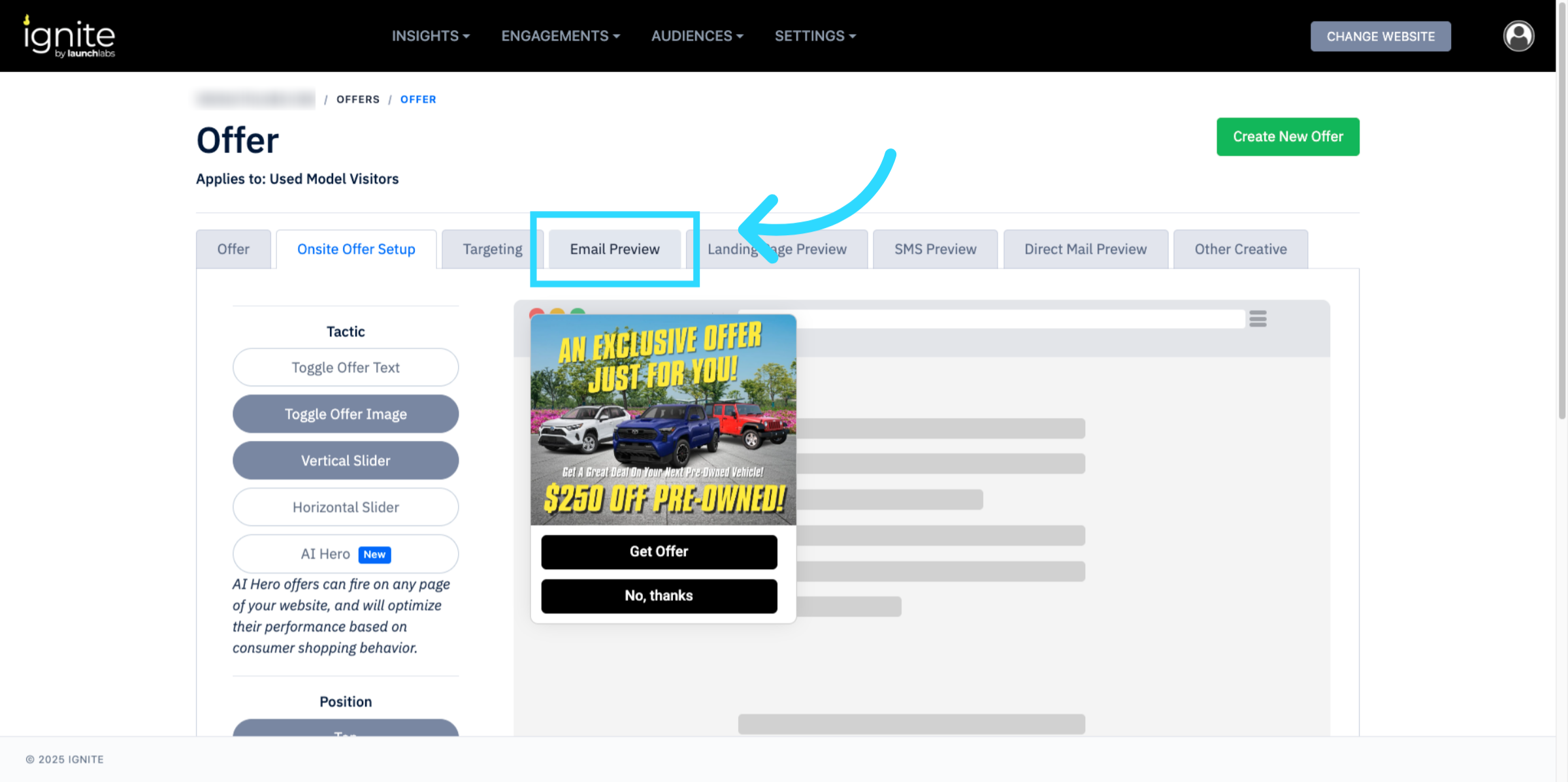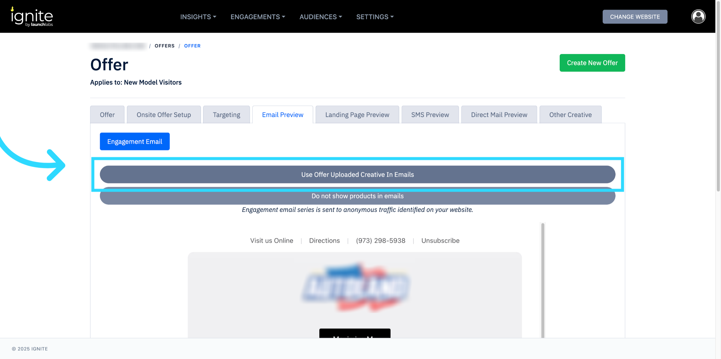 This article explains how to configure Engage Email in Ignite. Engage Email allows you to connect offers with email campaigns, customize subject lines, and preview creative assets before sending.