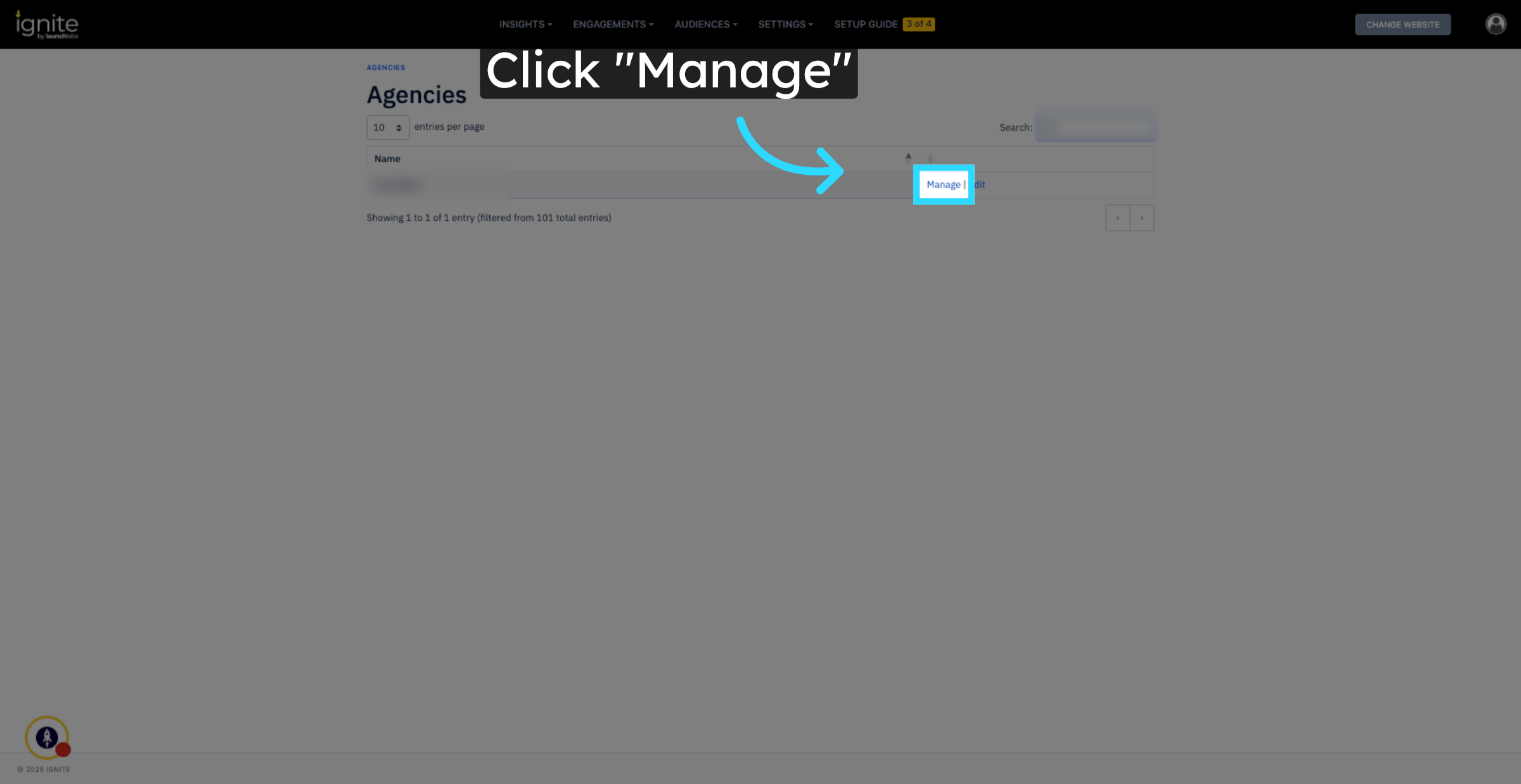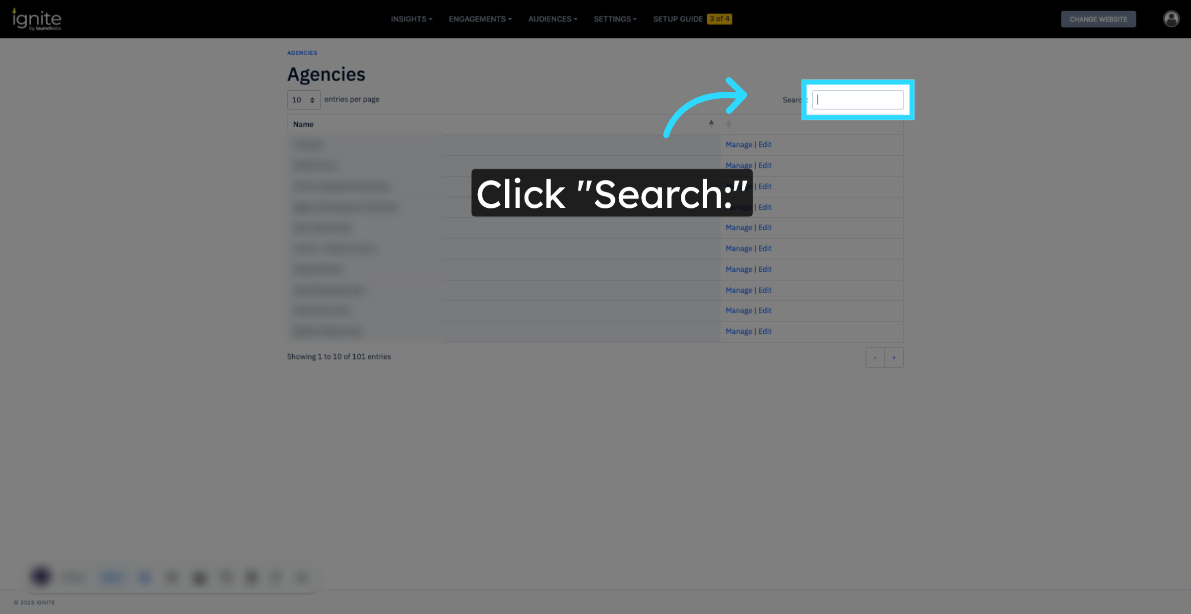 In the Agency Accounts section, use the Search field to locate your agency by name.