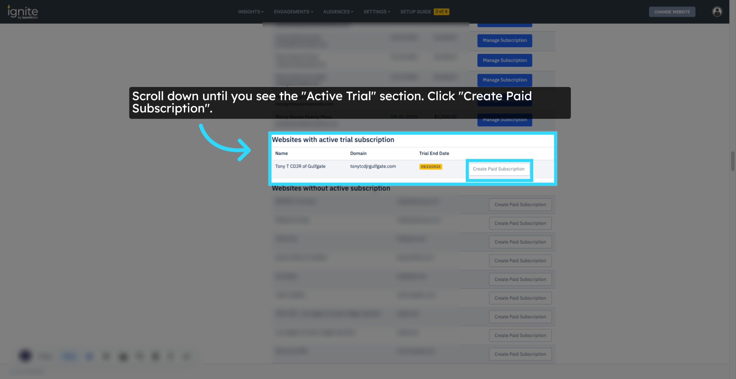 This article explains how to convert an active trial subscription into a paid plan in Ignite.