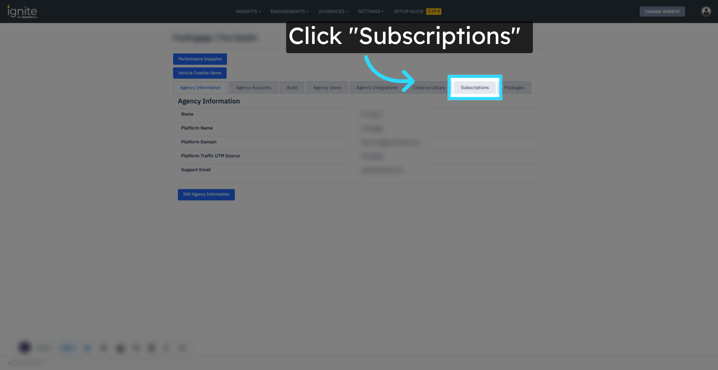 Log into your account and click the person icon in the top-right corner. Select Agency Settings.