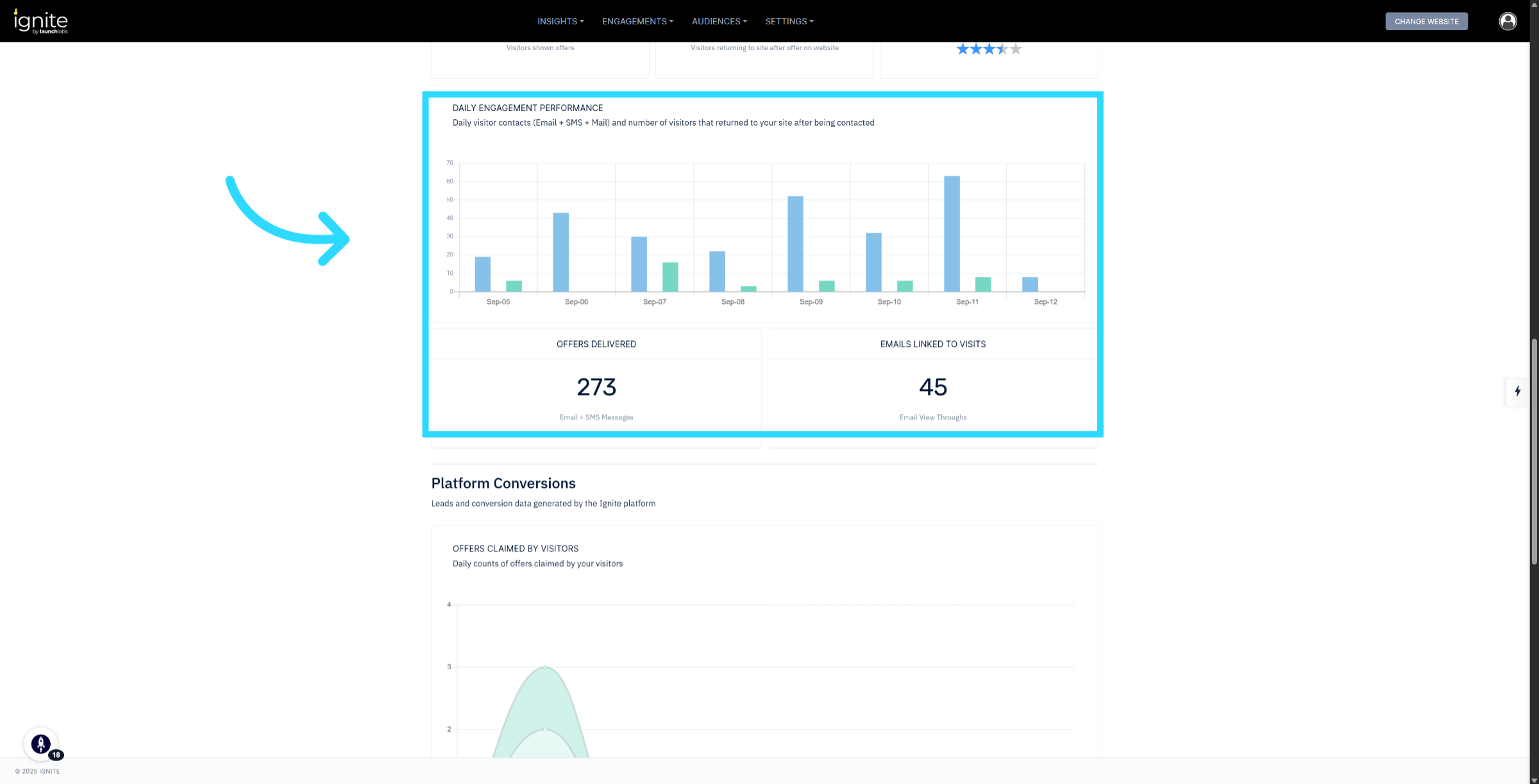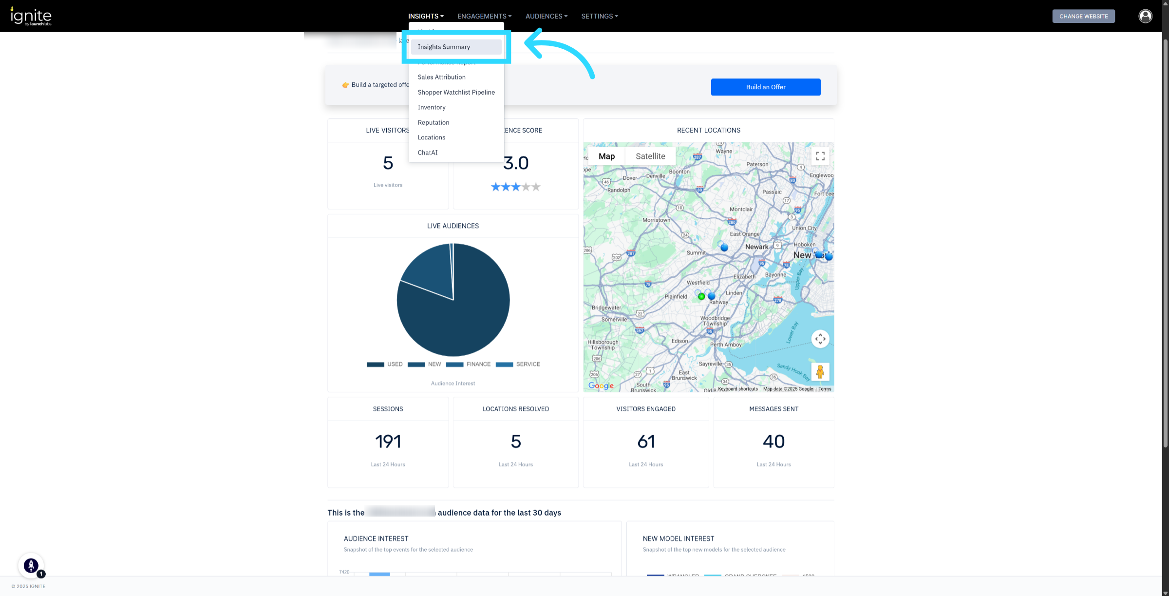 This article explains how to access and understand the Insights Summary in Ignite. The Insights Summary gives you a high-level view of your website’s engagement, performance, and conversion activity so you can quickly identify trends and opportunities. Watch this video tutorial to see the Insights Summary in action: